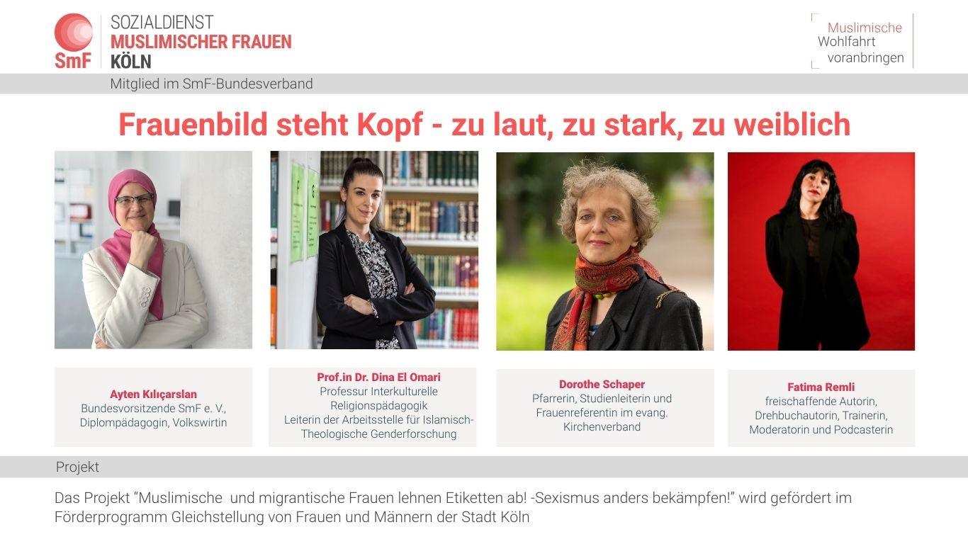 Anlässlich des Internationalen Tages gegen Gewalt an Frauen lädt der Sozialdienst muslimischer Frauen Köln e. V. zu einem Fachtag am 28. November 2025 von 17:00-20:30 Uhr ein. Unter dem Titel „Frauenbild steht Kopf – zu laut, zu stark, zu weiblich“ werden, gemeinsam mit Expertinnen vom Fach, Diskriminierung und Benachteiligung von Menschen aufgrund ihres Geschlechts, Rollenbilder und gesellschaftlichen Wandel in den Blick genommen und diskutiert, wie feministische, muslimische und christliche Perspektiven neue Denk- und Handlungsräume eröffnen können. Der Fachtag findet im Rahmen des Projektes „Muslimische und migrantische Frauen lehnen Etiketten ab – Sexismus anders bekämpfen!“, das durch das Förderprogramm Gleichstellung Frauen und Männer 2024 der Stadt Köln gefördert wird, statt.
