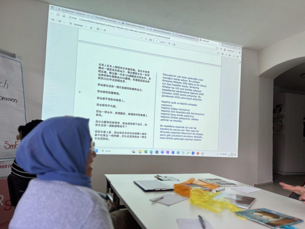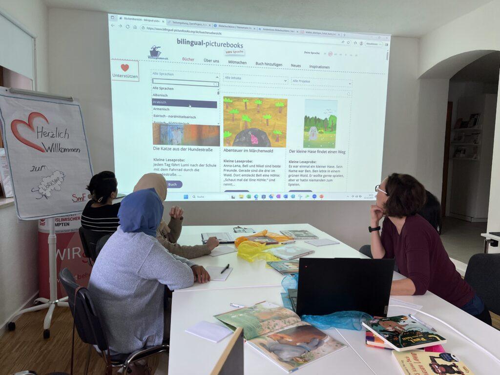 Ergänzend stellte Frau Sulzer die vielfältigen Angebote der Stadtbibliothek vor, darunter zweisprachige Bücher in vielen verschiedenen Sprachen, die Familien beim gemeinsamen Lesen und beim Erlernen neuer Wörter unterstützen. Die Veranstaltung bot zahlreiche praxisnahe Impulse und zeigte, wie Erzählen zu einem kreativen Erlebnis wird, das Sprachkompetenz, Fantasie und Verbindung im Familienalltag stärkt.
