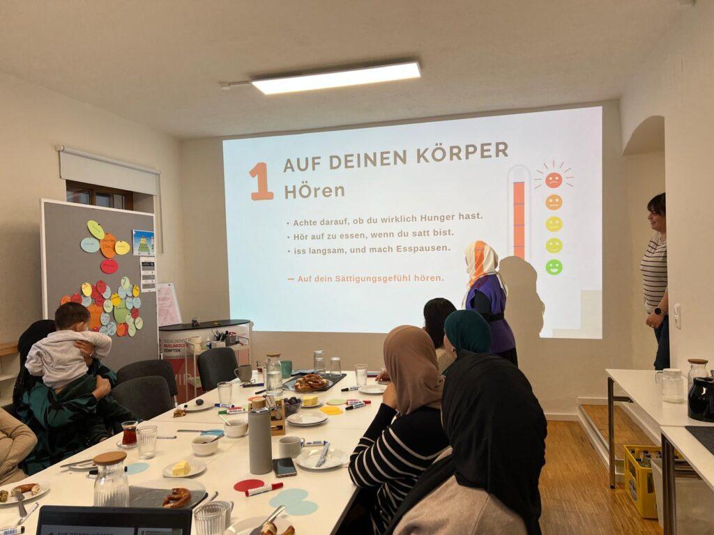 Schon zu Beginn gelang es der Referentin Heba Albaghdadi, die Teilnehmerinnen mitzunehmen und den Blick dafür zu öffnen, wie sehr Ernährung unsere Energie, Stimmung und innere Balance beeinflusst. Auf verständliche Weise erklärte sie, warum bewusste Ernährung nichts mit starren Diäten oder Verzicht zu tun haben muss, sondern vielmehr mit Selbstfürsorge und einem liebevollen Umgang mit dem eigenen Körper.