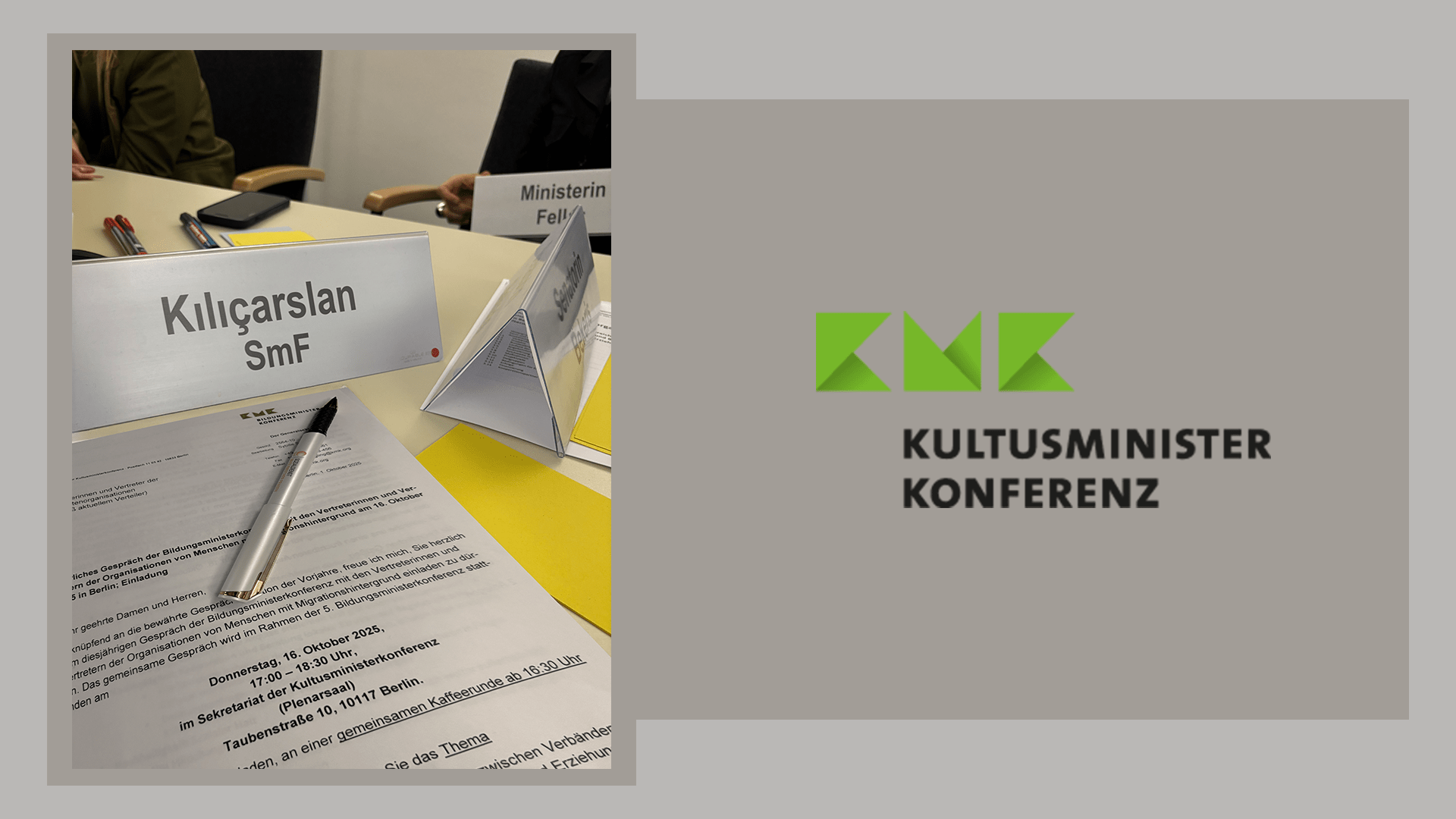 Am 16. Oktober 2025 fand in Berlin die 5. Bildungsministerkonferenz statt. In dem jährlichen Gespräch der Bildungsministerkonferenz mit den Migrantenorganisationen, an dem auch der SmF mit Bundesvorsitzende Ayten Kılıçarslan teilnahm, kündigte die Konferenz an, die bisherigen gemeinsamen Empfehlungen der KMK aus den Jahren 2007 und 2013 zu überprüfen und weiterzuentwickeln. Die Teilnehmenden wurden eingeladen, sich aktiv einzubringen.