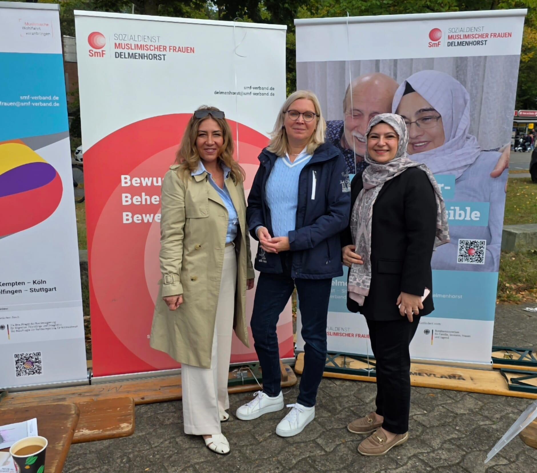 Im Rahmen der Interkulturellen Wochen war der Sozialdienst muslimischer Frauen Delmenhorst e. V. mit einem farbenfrohen Informationsstand auf dem Stadtteilfest Düsternort vertreten. Neben ausführlichen Informationen über unsere Angebote in den Bereichen Beratung, Familienarbeit, Integrationsförderung und Ehrenamtsbegleitung konnten sich Besucherinnen und Besucher auch über aktuelle Projekte und zukünftige Veranstaltungen informieren.