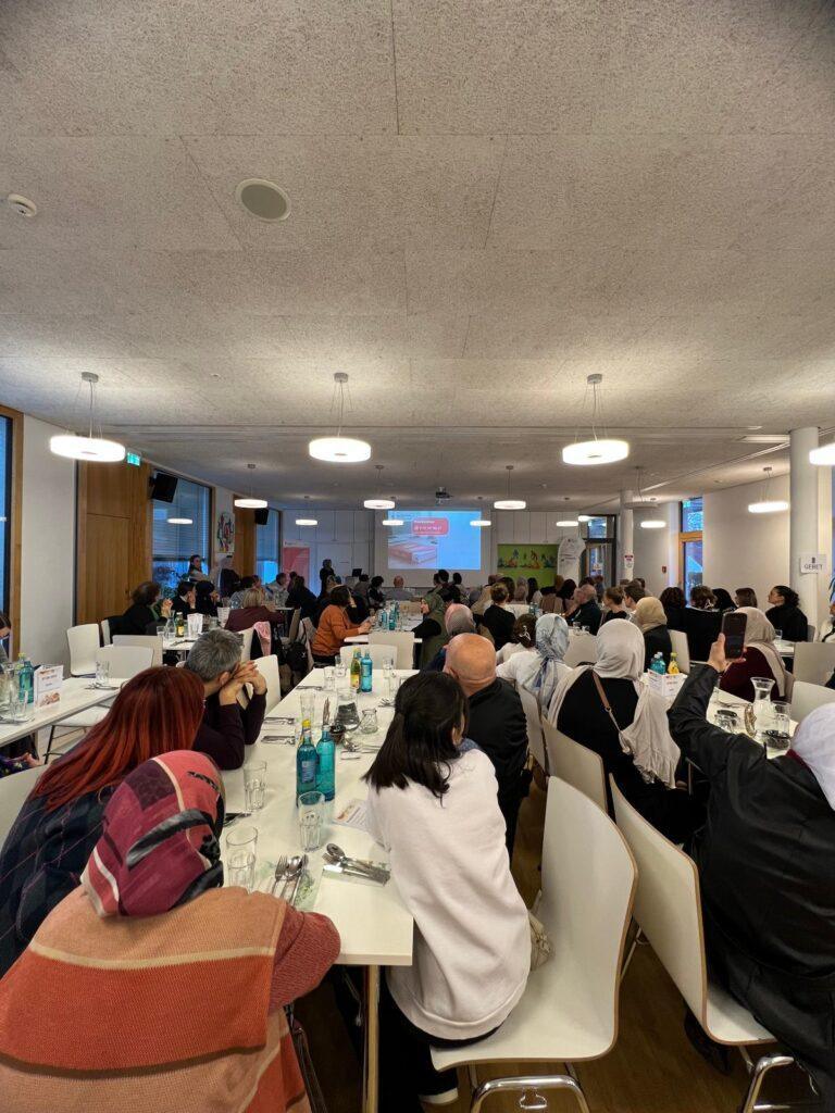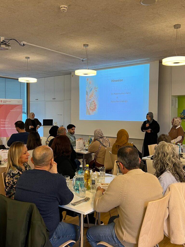 Darauf folgte ein Impulsvortrag von Dr. Müberra Ahci-Hanci und Rabia Mercimekoğlu zum Thema „Ramadan: Ein Monat wie kein anderer – Tradition, Spiritualität und die Kraft des Fastens“. Sie erläuterten die Bedeutung des Fastens im Islam sowie die Bezüge zu den beiden anderen großen monotheistischen Religionen. Dabei hoben sie die spirituelle Dimension des Ramadans hervor und zeigten auf, welche Werte – Gemeinschaft, Mitgefühl, Dankbarkeit und Solidarität – in dieser Zeit besonders gelebt werden. Die Kraft und der Wille zu einem friedvollen Miteinander bildeten die zentrale Botschaft des Vortrags.