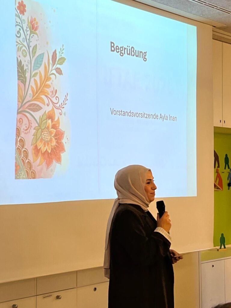 Der Abend begann mit einer Begrüßung durch die Vorstandsvorsitzende Ayla Inan. Da der SmF Bundesverband in diesem Jahr sein 10-jähriges Bestehen feiert, zeigte sie den Gästen ein Jubiläumsvideo des Bundesverbands.
