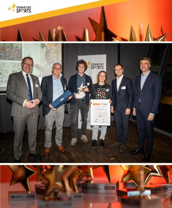 Wir freuen uns sehr, dass unser Kooperationsprojekt „Klettern gegen Rassismus“ gemeinsam mit der DAV Sektion Allgäu-Kempten mit dem Bronzenen Stern des Sports ausgezeichnet wurde. Die feierliche Preisverleihung fand in München statt, überreicht wurde der Preis von Philip Lahm, deutschem Fußballweltmeister und Schirmherr des Wettbewerbs.